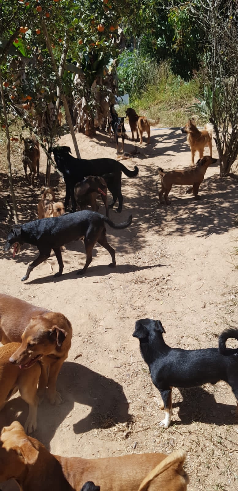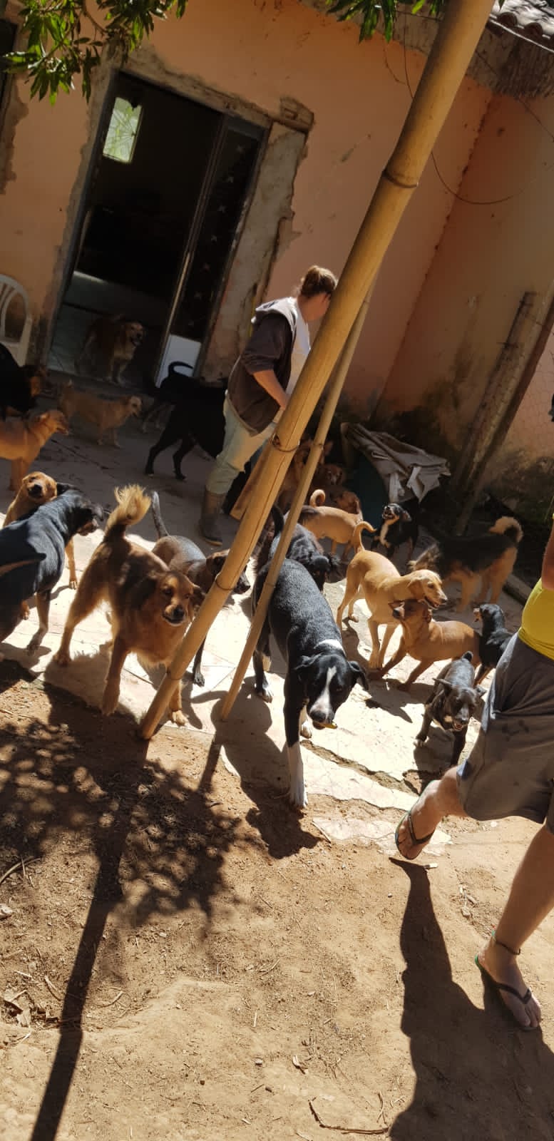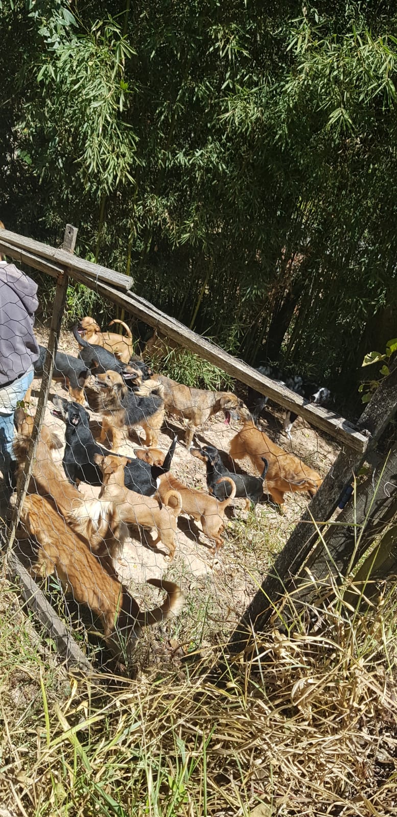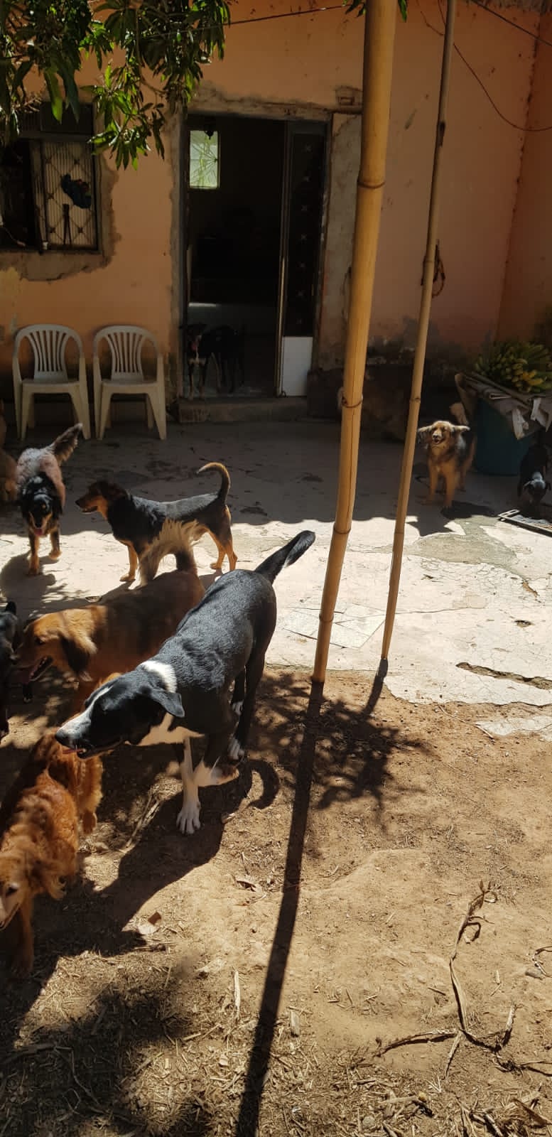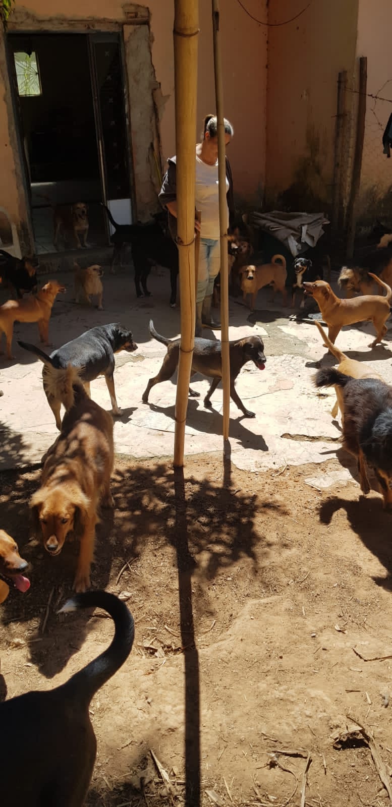 Carla Serrano protetora independente há 10 anos, moradora de Esmeraldas desde 2013, com 10 cães e vendo o descaso e abandono dos cães, acabou recolhendo mais alguns e hoje está na faixa de 90 cães, com a pandemia veio algumas dificuldades pois as doações caíram muito.