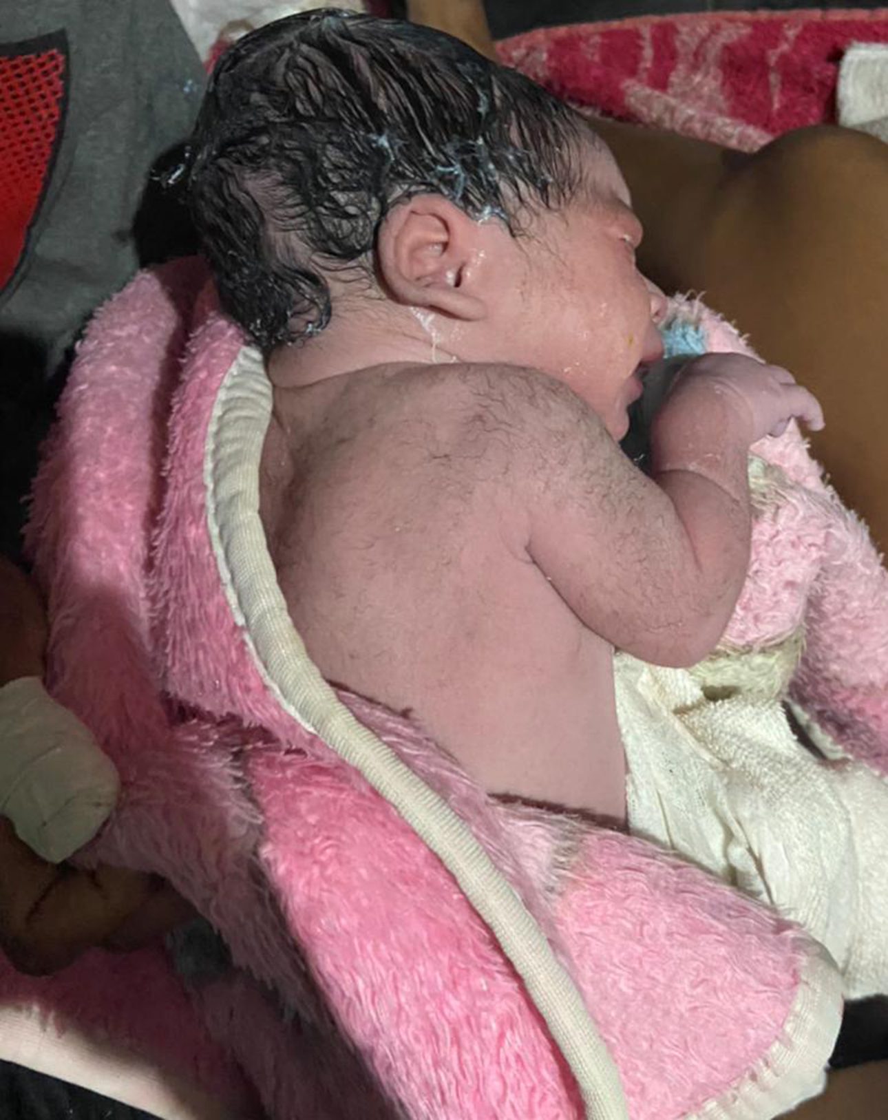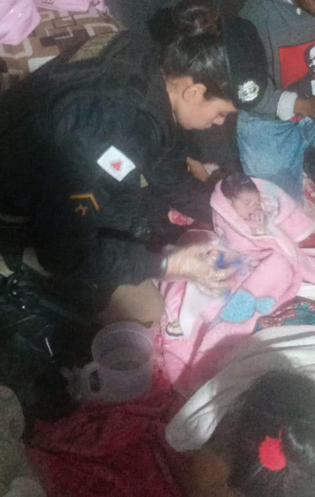 Após o nascimento, a criança não chorava e com corpo muito gelado, então, foi necessário a utilização da manobra Heimlich, para desobstrução das vias respiratórias, conforme relato da soldado Bárbara, foram longos segundos ate a criança chorar.