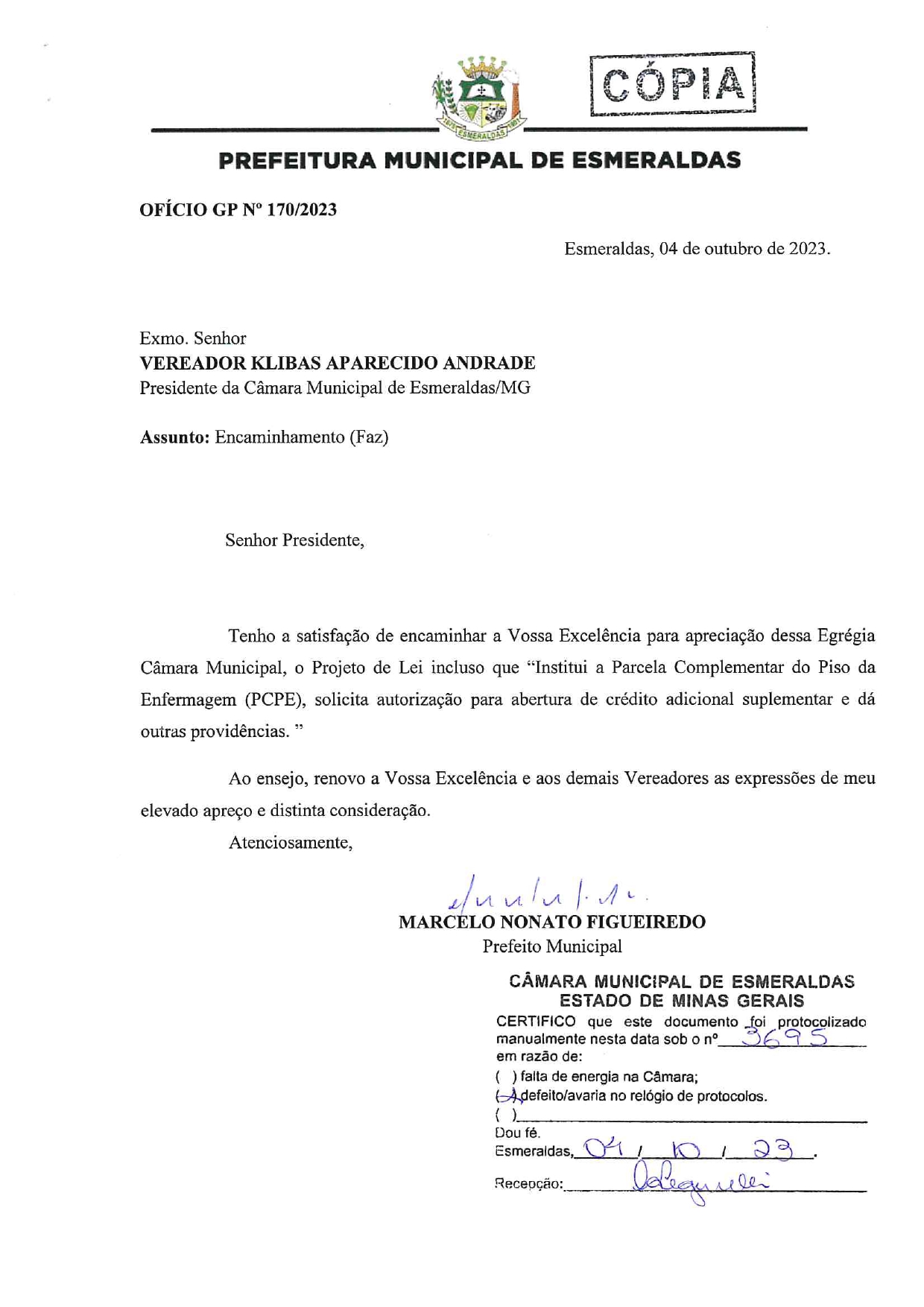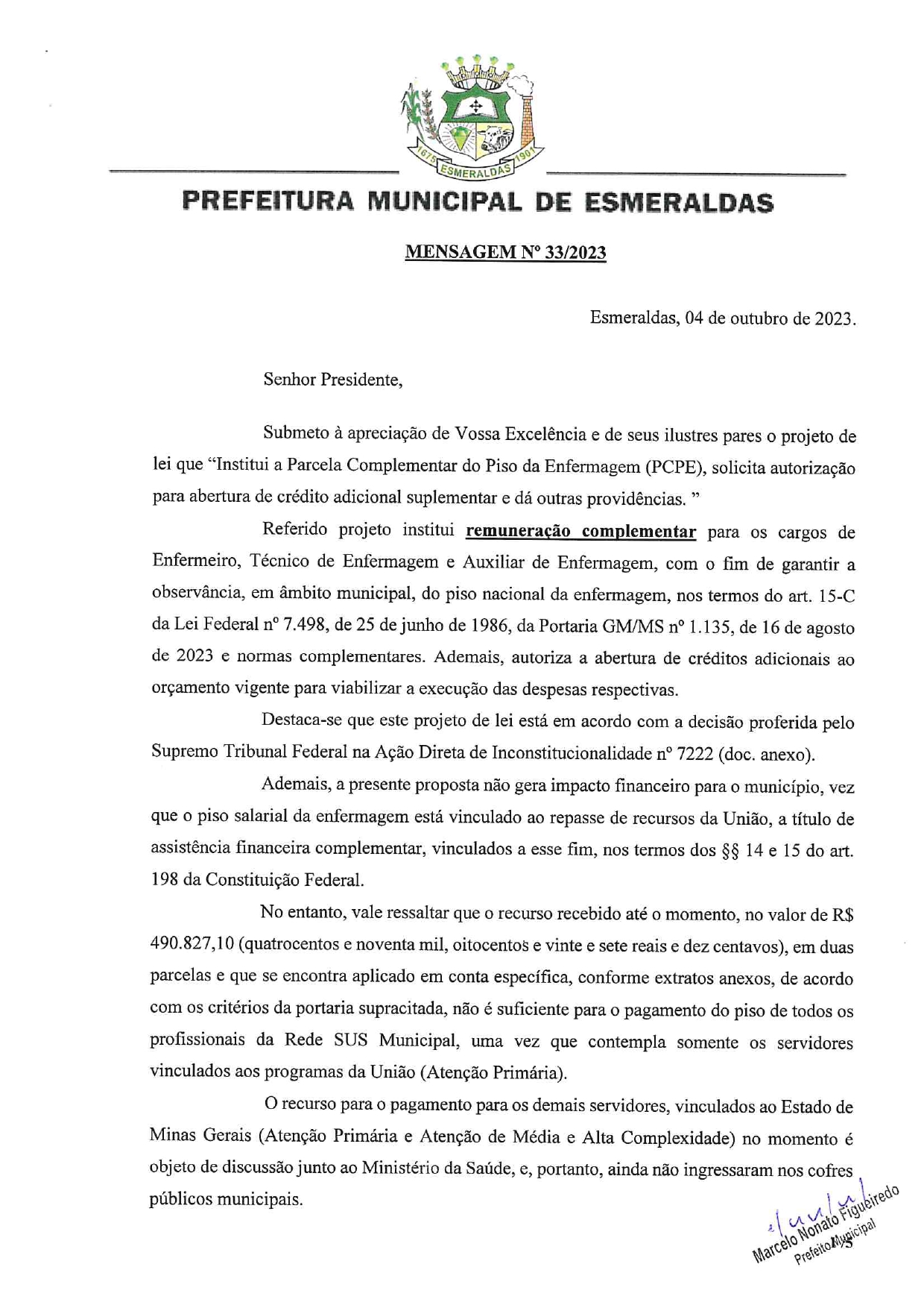 sobre o pagamento referente ao repasse da União para complemento do piso salarial dos profissionais de enfermagem do município, projeto esse que vinha sendo cobrado pela categoria e SINSERVES – Sindicatos e Federações em Esmeraldas.