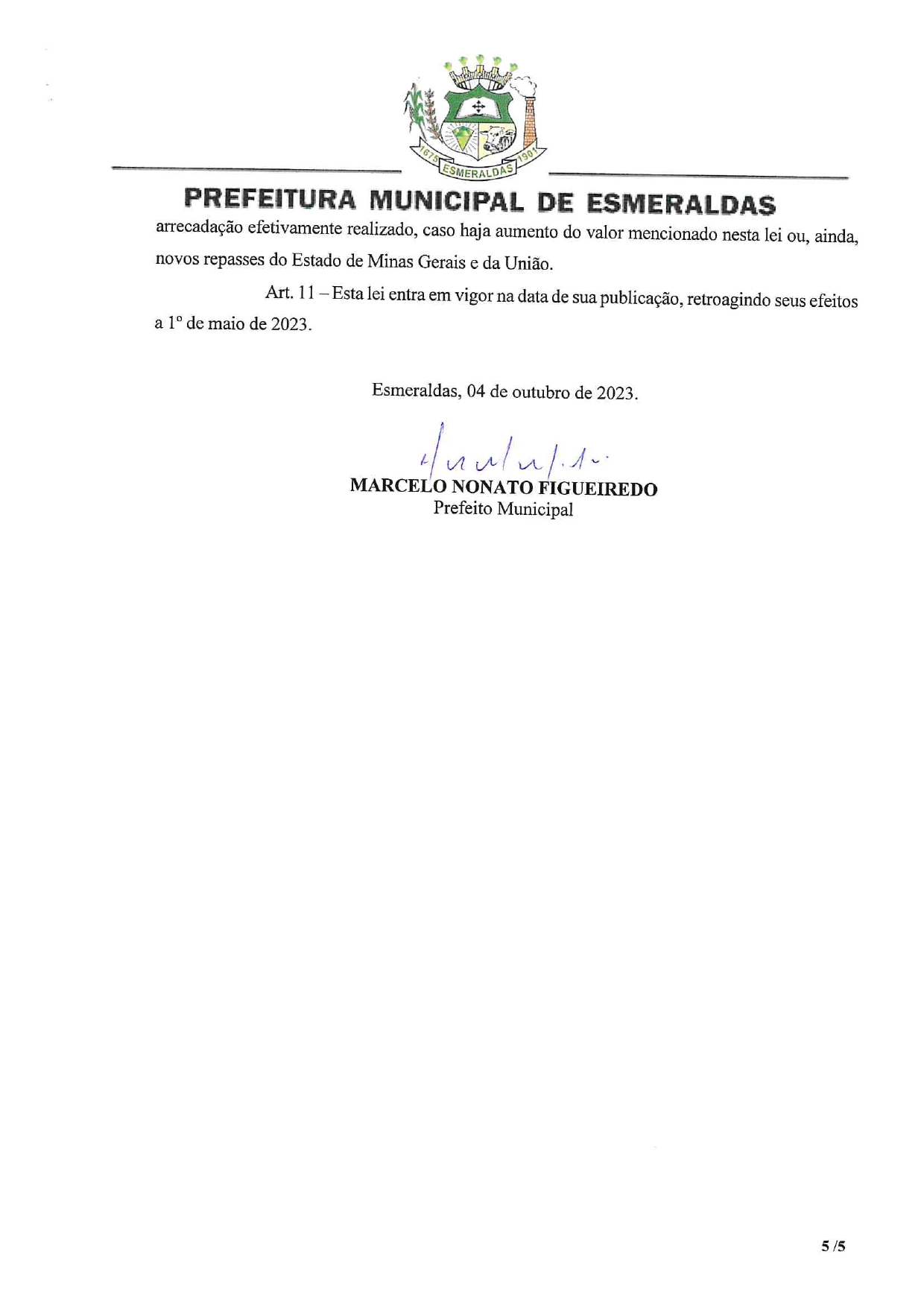 Esmeraldas recebeu duas parcelas da União: