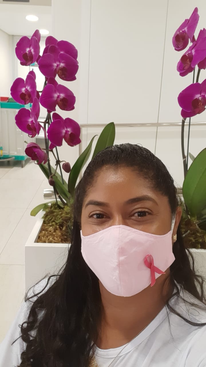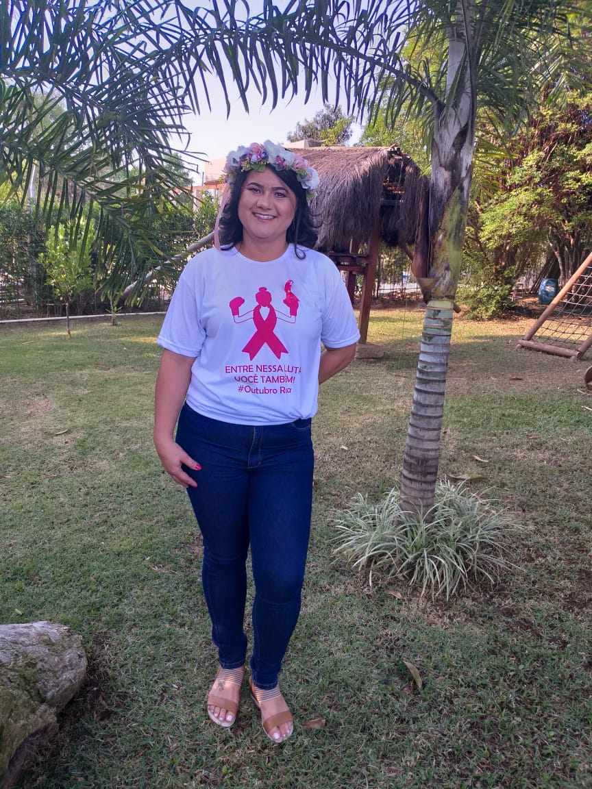 Renata Conceição Lucas Gomes, trabalhava em uma loja de materiais elétricos no ano de 2015, mais preciso 10 de Dezembro com 33 anos, após o dia de trabalho chegando em casa organizei o jantar e fui para o banho, nesse momento toquei minha mama direita e percebi um nódulo, veio a preocupação no momento e junto a ansiedade. No dia seguinte fui ao trabalho e comuniquei com a empresa a precisão de ir ao médico, assim fiz. Chegando ao hospital o médico disse que muito provável seria um câncer de mama e encaminhou para a Mastologista. Começou a correria contra o tempo, ultrassom, mamografia, biópsia e logo veio o resultado, em janeiro de 2016 desesperada fiz a retirada total da mama direita e esvaziamento total das axilas, passei por 12 sessões de quimioterapia e 19 radioterapia, meu cabelo caiu, as cicatrizes ficaram e junto delas a Marca da Vitória. Precisamos nos tocar, o apoio da família, amigos, orações, Jesus foi minha maior fortaleza. Manter o equilíbrio emocional é fundamental, apoio dos grupos para o paciente se sentir acolhida, psicólogos e perceber que não está sozinha, lembrar que cada doença é única, os efeitos colaterais, retirada da mama, falta dos cabelos costumam abalar muito o auto estima. Receber o diagnóstico não é fácil, mas os relatos de pessoas que venceram, ajudam muito e nos da esperança.