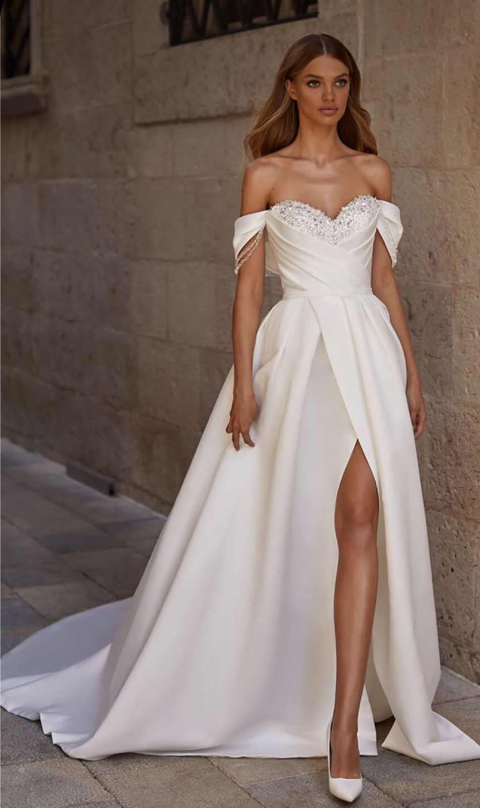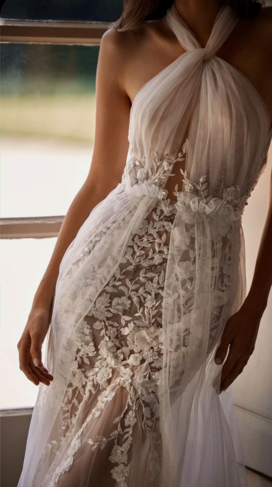 O modelo de vestido de noiva com capa é ideal para noivas modernas e românticas, combinando transparência e leveza com um toque de romantismo. É perfeito para casamentos ao ar livre durante o dia, até as 5h30 da tarde, e com um estilo fluido representa uma noiva calma e serena. Mesmo com um vestido minimalista, é possível incorporar a modernidade das tendências da noiva desta temporada.
