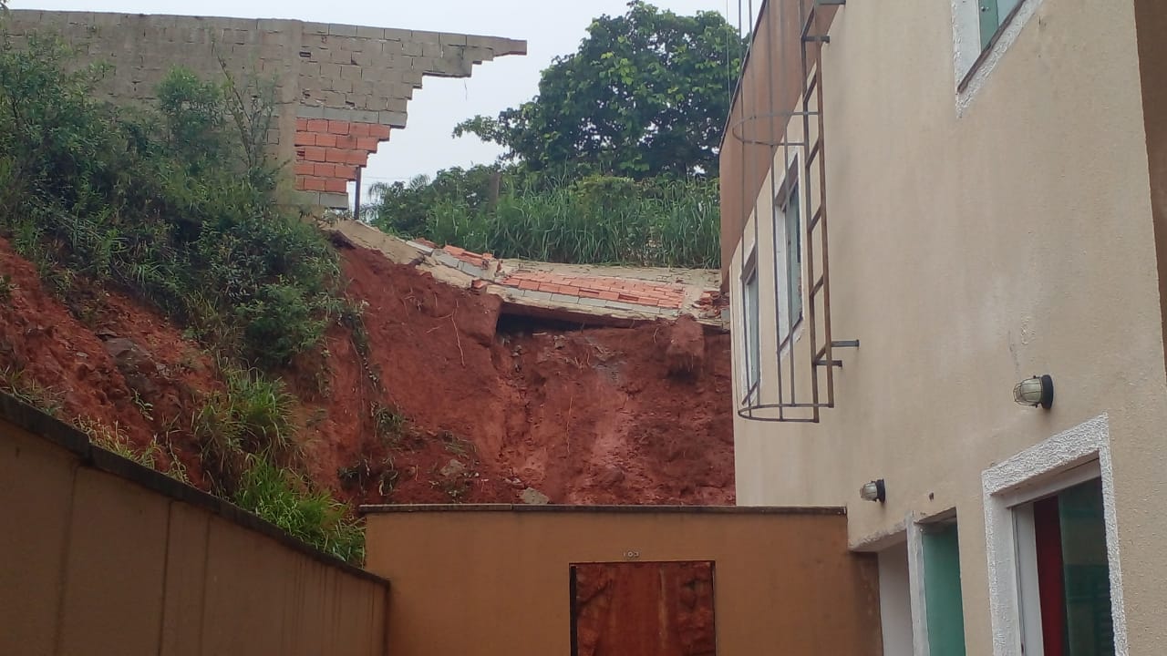 Ocorreu nesta tarde 09 de janeiro, deslizamento de terra e queda do muro que faz divisa com o Condomínio Nossa Fazenda no bairro São Pedro – Esmeraldas,