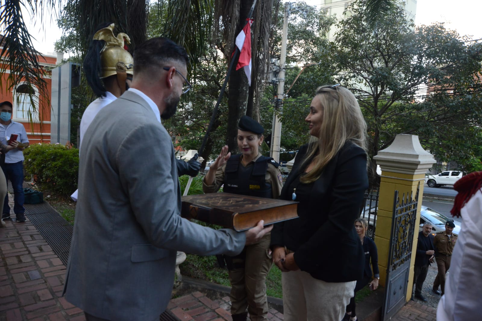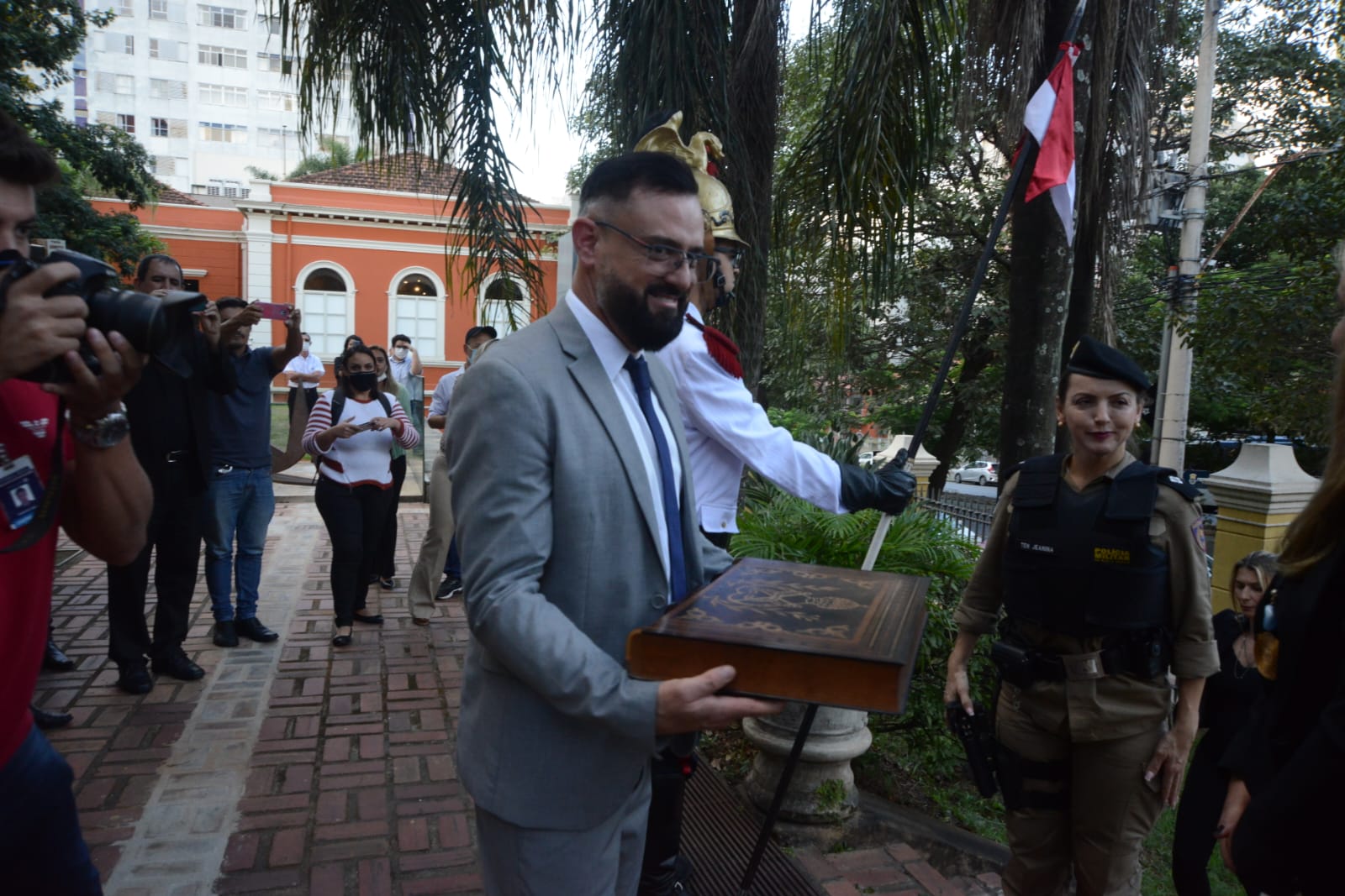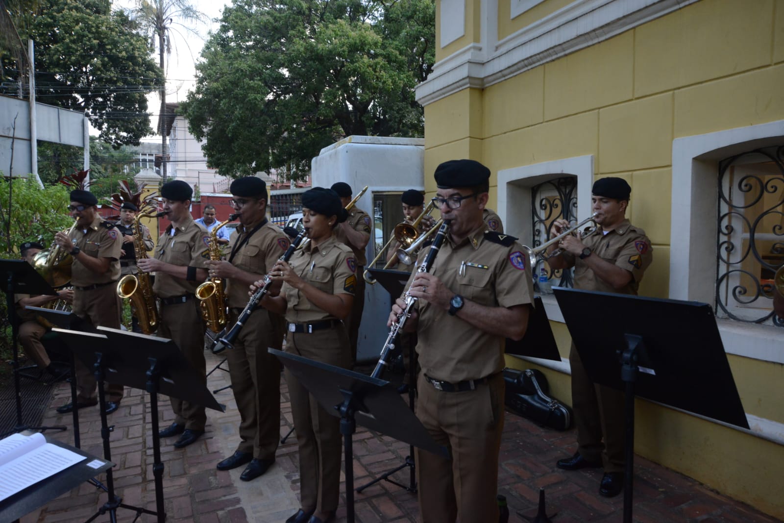 Os hinos foram recebidos ao som do Conjunto de Sopros da Polícia Militar de Minas Gerais.