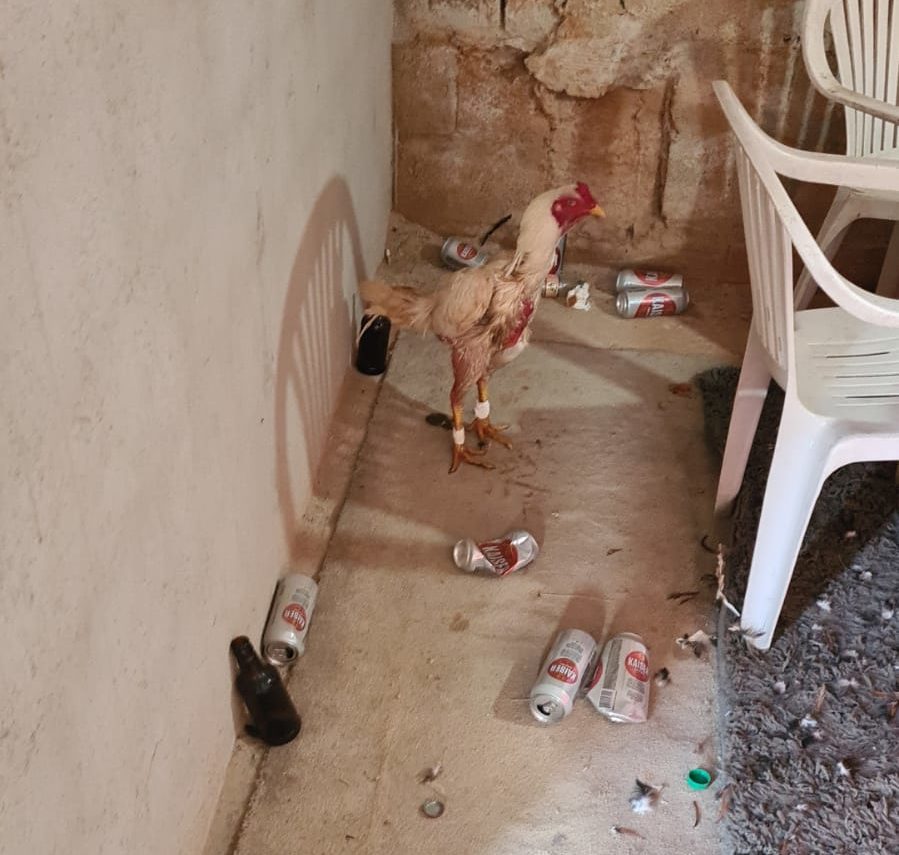 De acordo com a Polícia Militar, após a entrada no imóvel foi constatando que havia o funcionamento de uma “Rinha de Galo”, foi identificado mais de 40 aves no local, incluindo aves mortas e feridas.