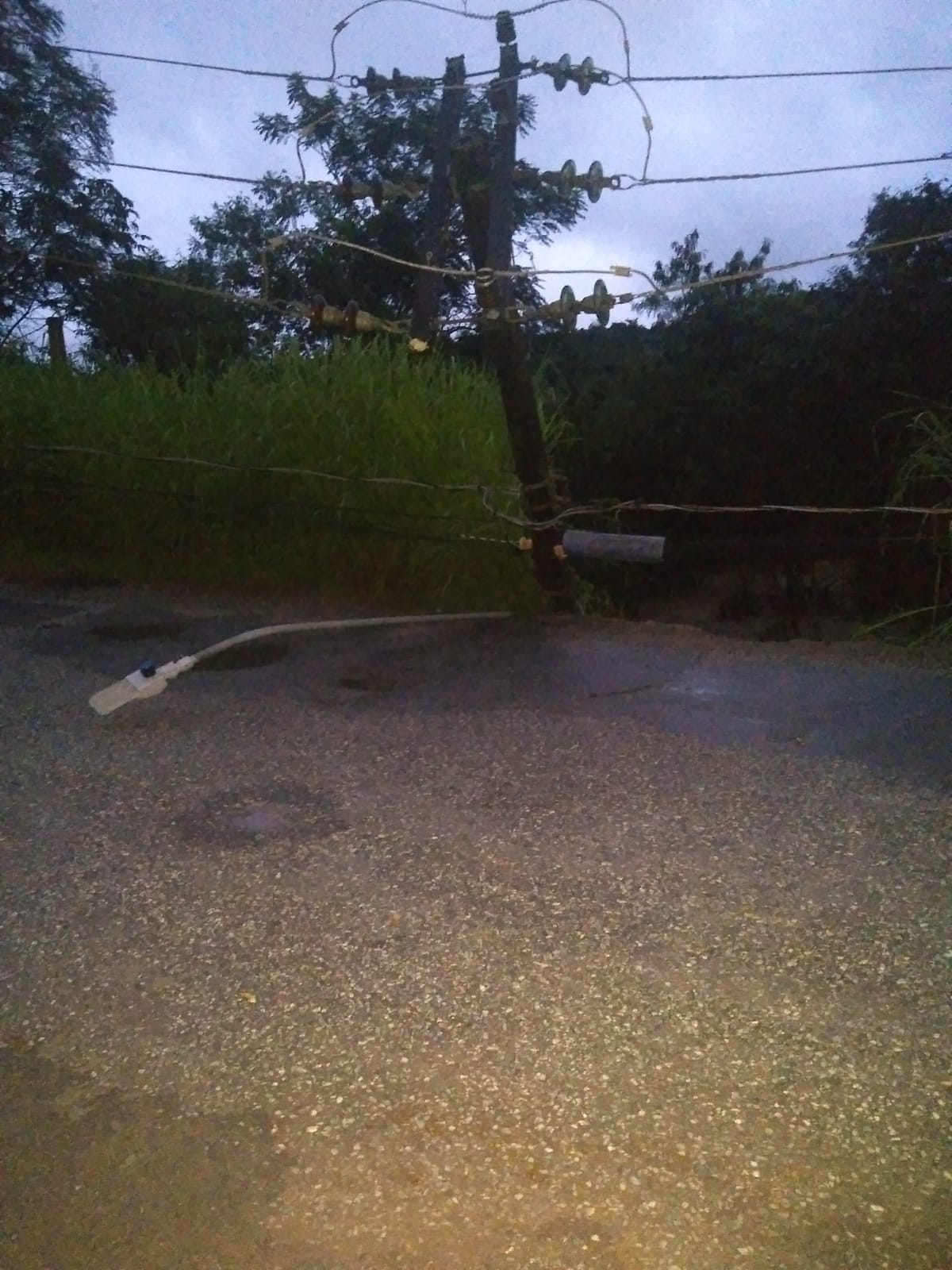 Na manhã desta terça-feira 11 de janeiro, um poste de luz caiu sobre a ponte  sentido a Campo Alegre, fiação está exposta com risco de choque.