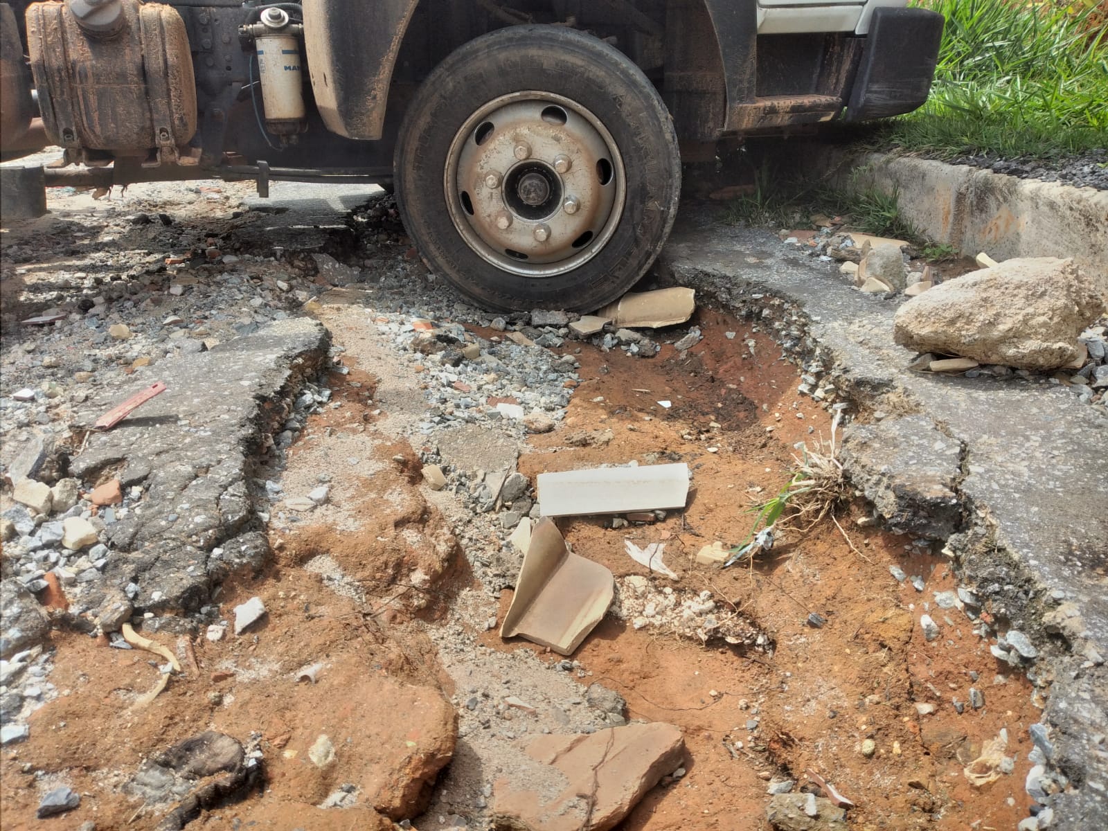Nessa manhã do dia 10 de novembro nosso jornalismo conversou com o Vice Prefeito Rodrigo Sampaio que nos informou que irá enviar uma equipe no local. Segundo o vice-prefeito, o contrato da prefeitura com a empresa que presta esse serviço, é somente de tapa buracos e que para o momento não seria possível realizar o recapeamento e não há previsão para a realização deste serviço na cidade.